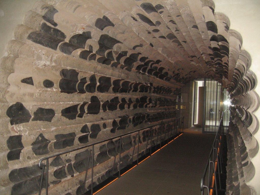 Une galerie a été creusée dans ce mur sous le clocher de droite, elle est de 15 m