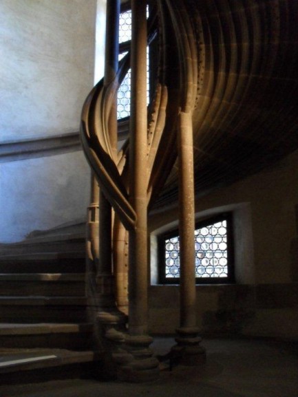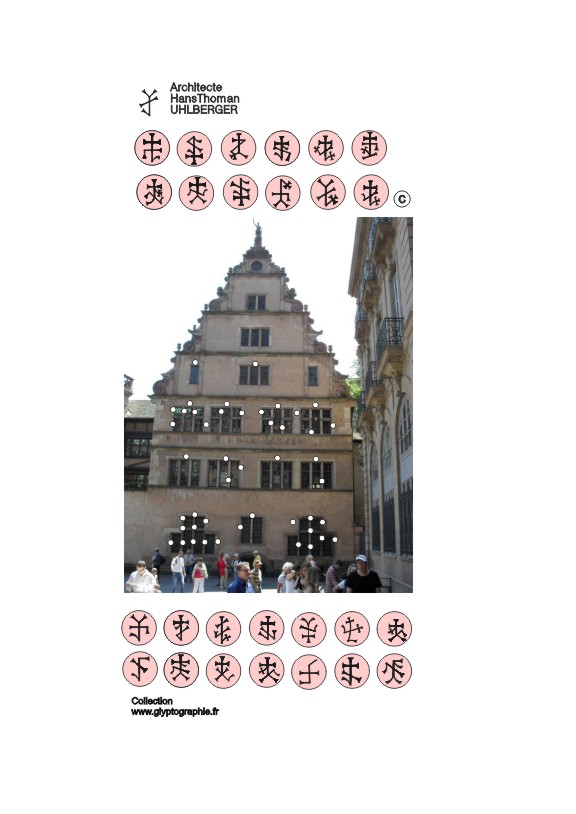 Développé stéréotomique de l'escalier avec les marques lapidaires de tous les tailleurs qui ont participés à sa construction.