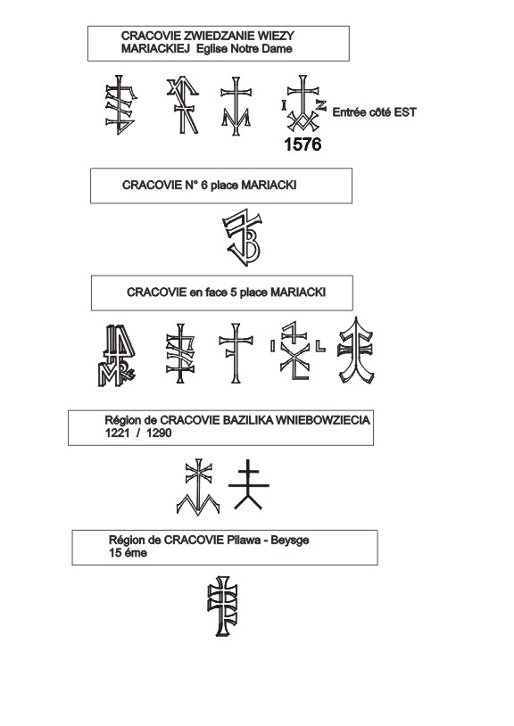 Les marques des tailleurs de pierre sur les édifices en Pologne et plus particulièrement à Cracovie et sa région, sont généralement en rond de bosse