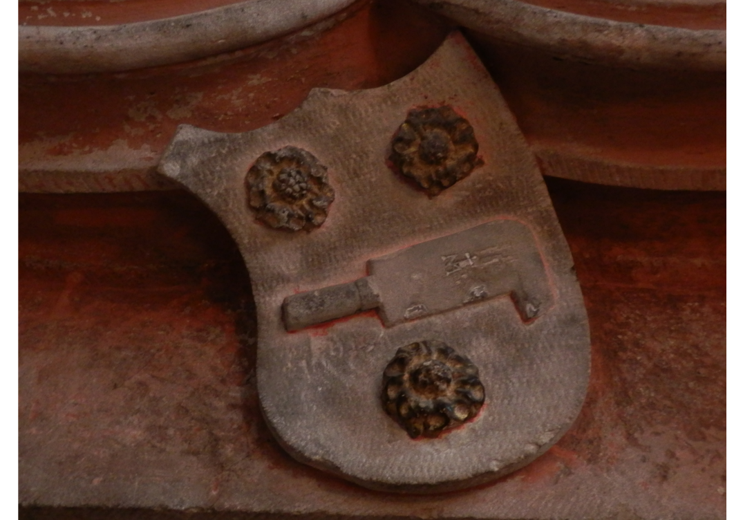 Vous trouverez la marque de Hans Hammer au milieu de la rampe de l'escalier courbe à droite et la date de 1485